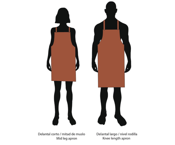 DESCRIPCIÓN: Delantal de cuerpo completo en tela twill de algodón en color azul. Correa cruzadas en color terracota. Diseño en material liviano con bolsillo funcionales perfecto para el día a dia. Disponible en largo de rodilla y largo mitad de muslo.